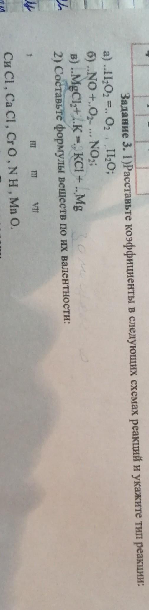 1)расставьте коэффициенты в следующих схемах реакций и укажите тип реакций. 2) составьте формулы веществ по их валентности.