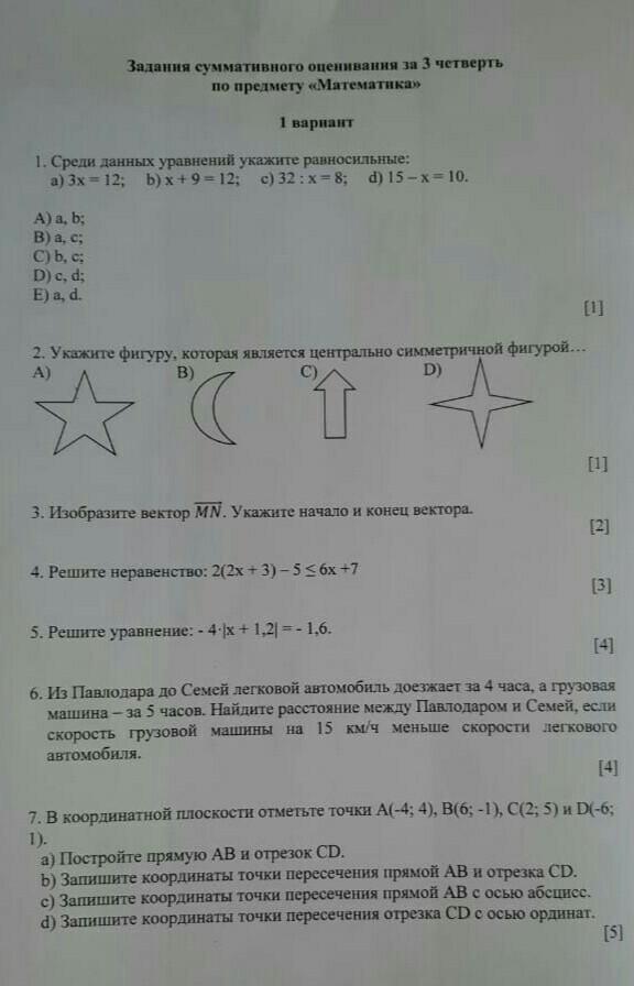 5) V(лег)=x, V(груз)=x-15, 4x=5(x-15), 4x=5x-75, x=75, S=V*t=75*4=300(км)
