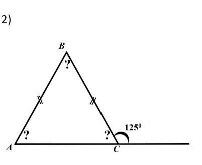 Внешний угол и угол BCA смежные, значит BCA=180-125=55
