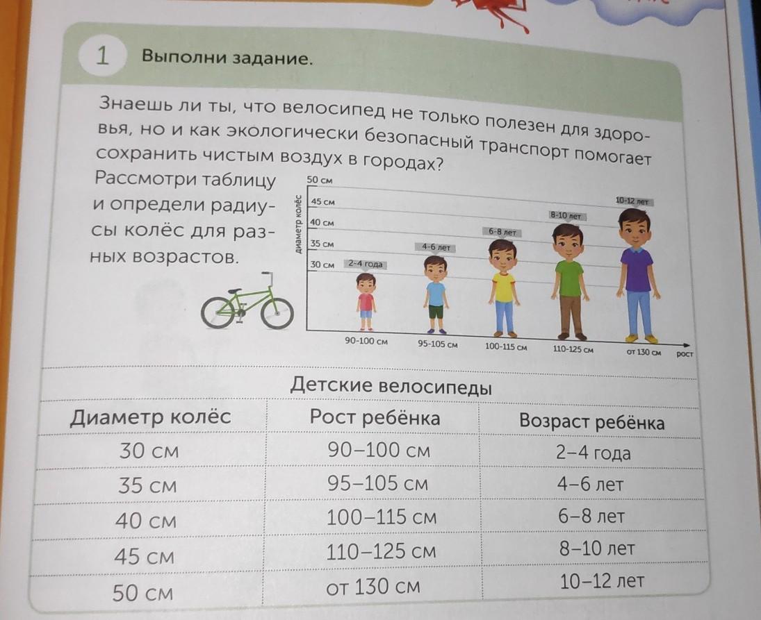 Для ребёнка возраста 4-6 лет радиус колеса равен 35 см