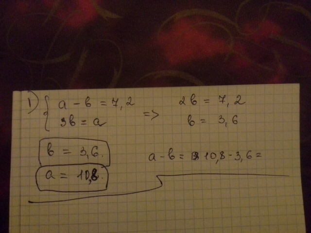 Разность двух чисел равна 7,2.Если меньше из чисел увеличить в 3 раза,то получиться равные числа.Найдите это числа