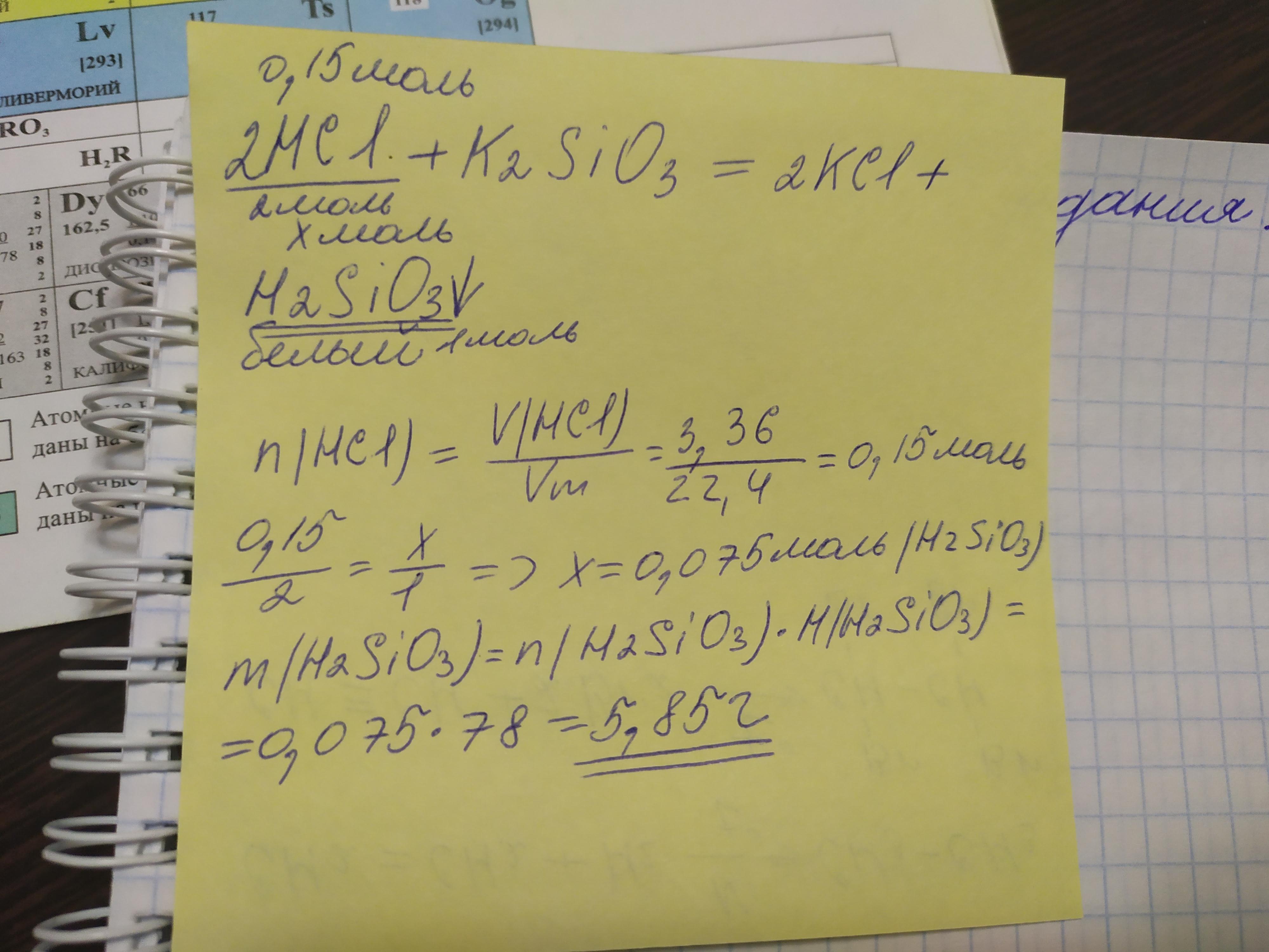 сколько грамм осадка образуется при пропускании 3,36 л хлороводорода через раствор силиката калия