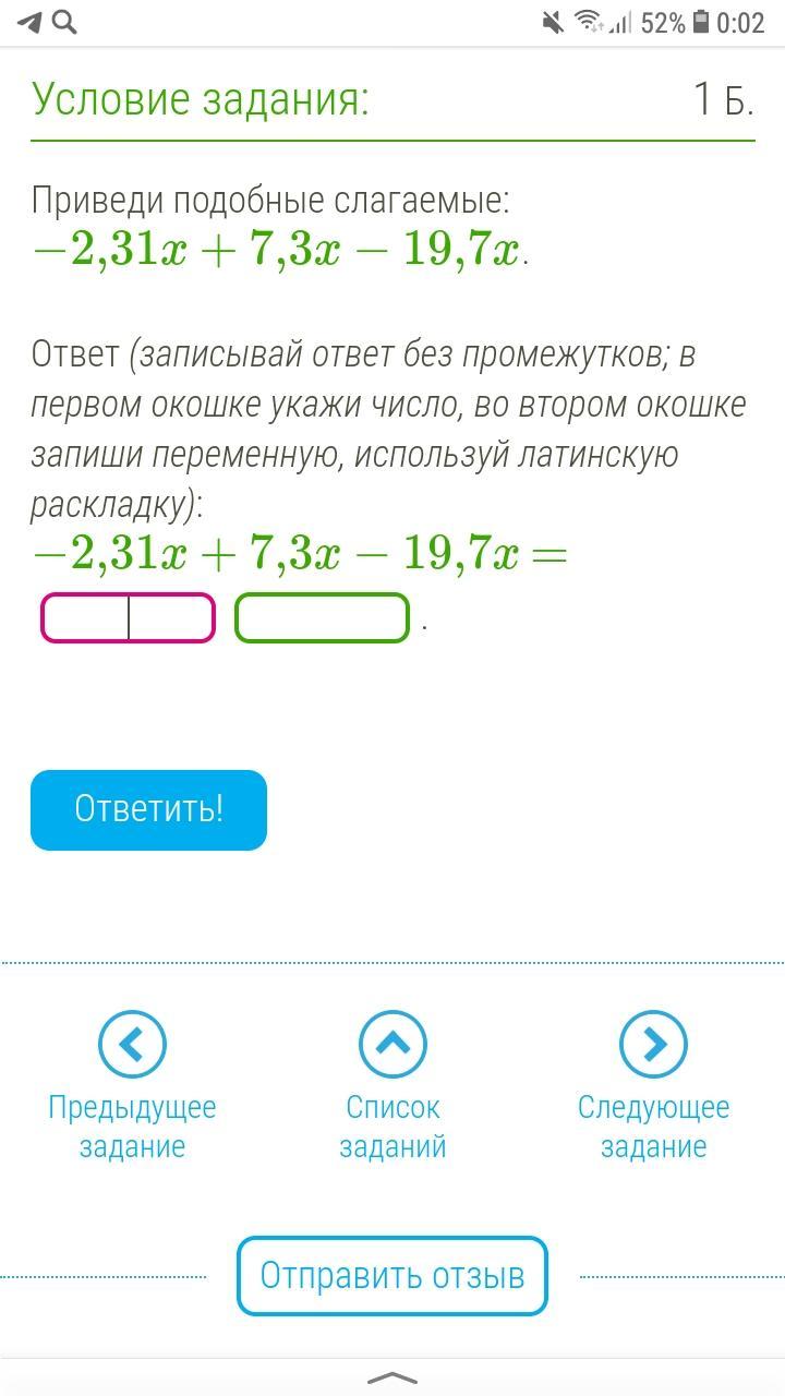 -2,31х + 7,3х - 19,7х = ( -2,31 + 7,3 - 19,7 ) · х = -14,71х