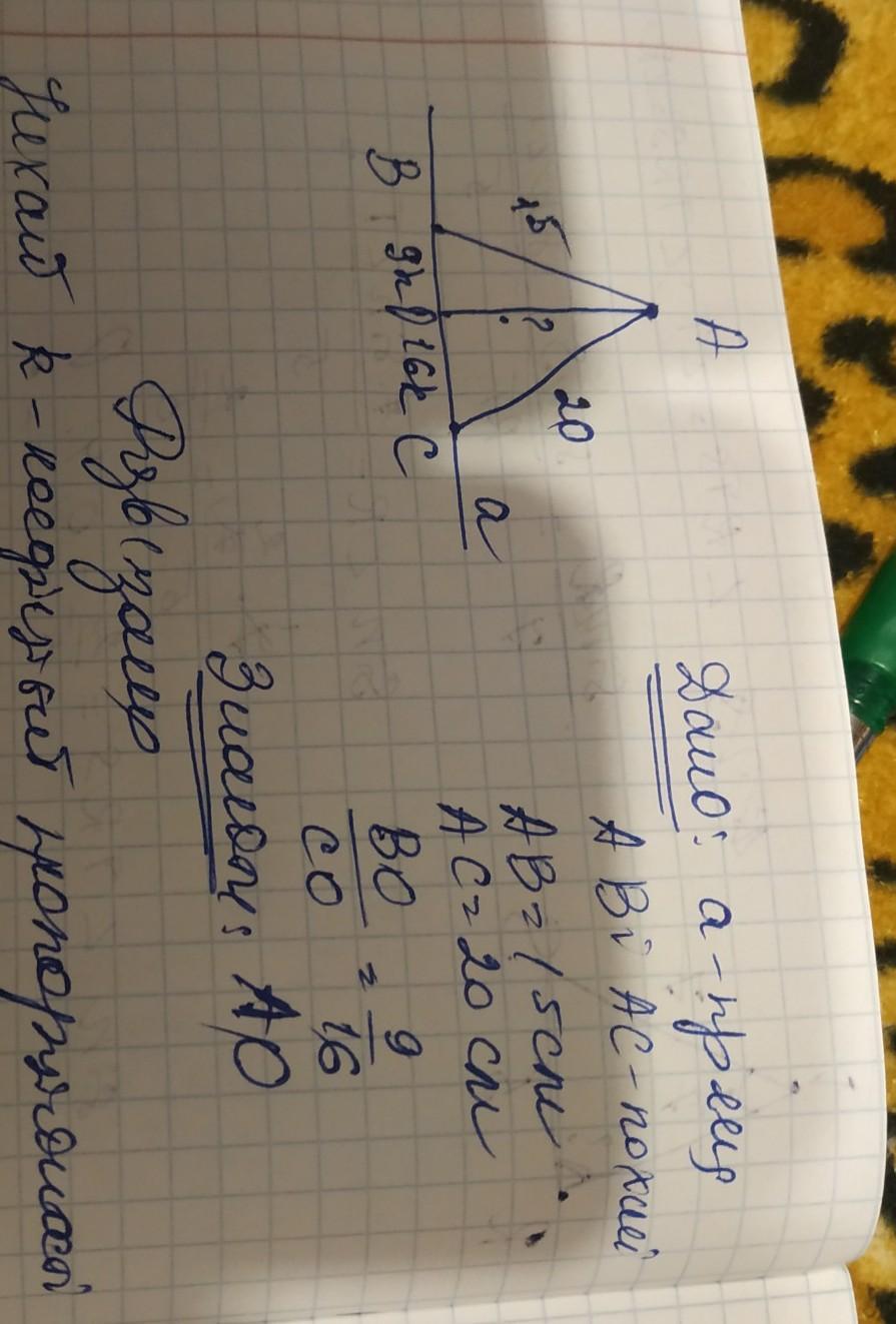 з точки до прямої проведено дві похилі довжини яких дорівнюють 15 см і 20 см, а довжини їх проекцій відносяться як 9:16. знайти відстань від площі до прямої. з малюнком та дано