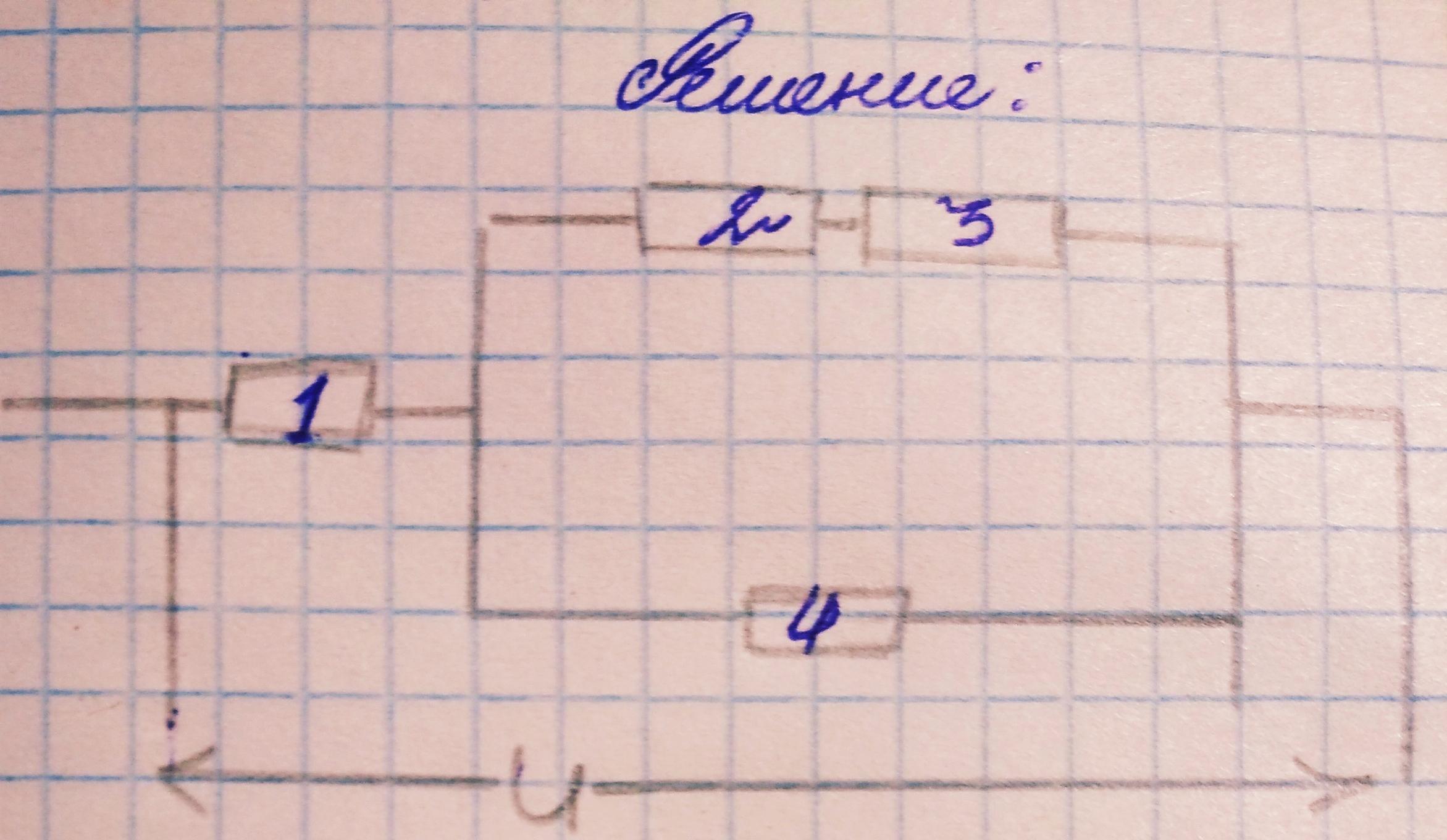 (R1=1 Ом, R2= 2 Ом, R3=3Ом, а R4=4 Ом)