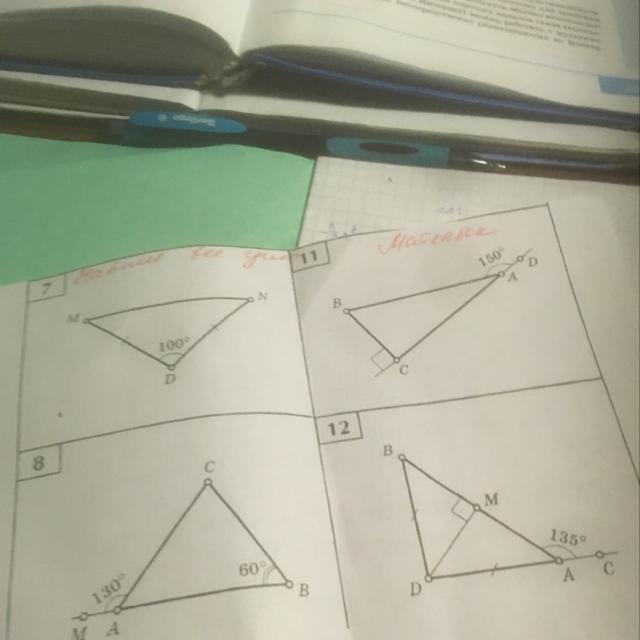8) ∠mac смежный с ∠bac ⇒ ∠bac = 180° - ∠mac = 180° - 130° = 50°