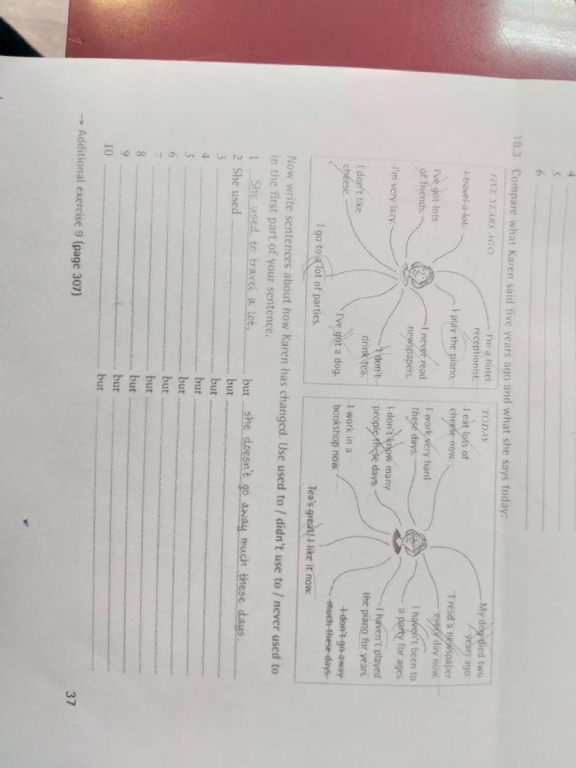 5) She used to be a hotel receptionist but she works in a bookshop now.