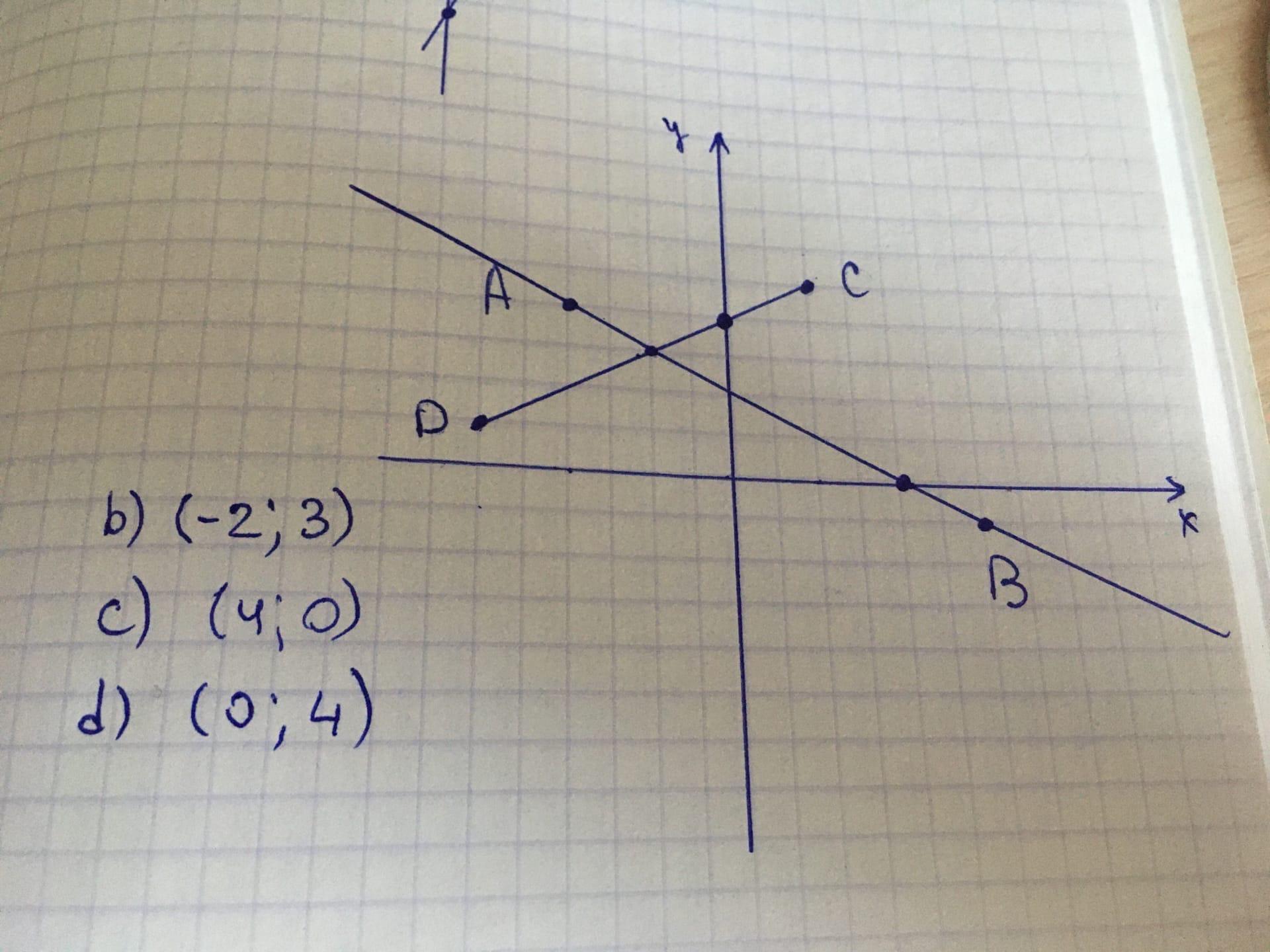 d) Запишите координаты точки пересечения отрезка CD с осью ординат.