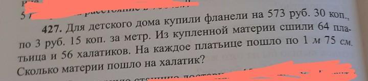 3) Теперь отнимаем от всей фланели платья и получаем ответ, сколько метров израсходовали на халатики.