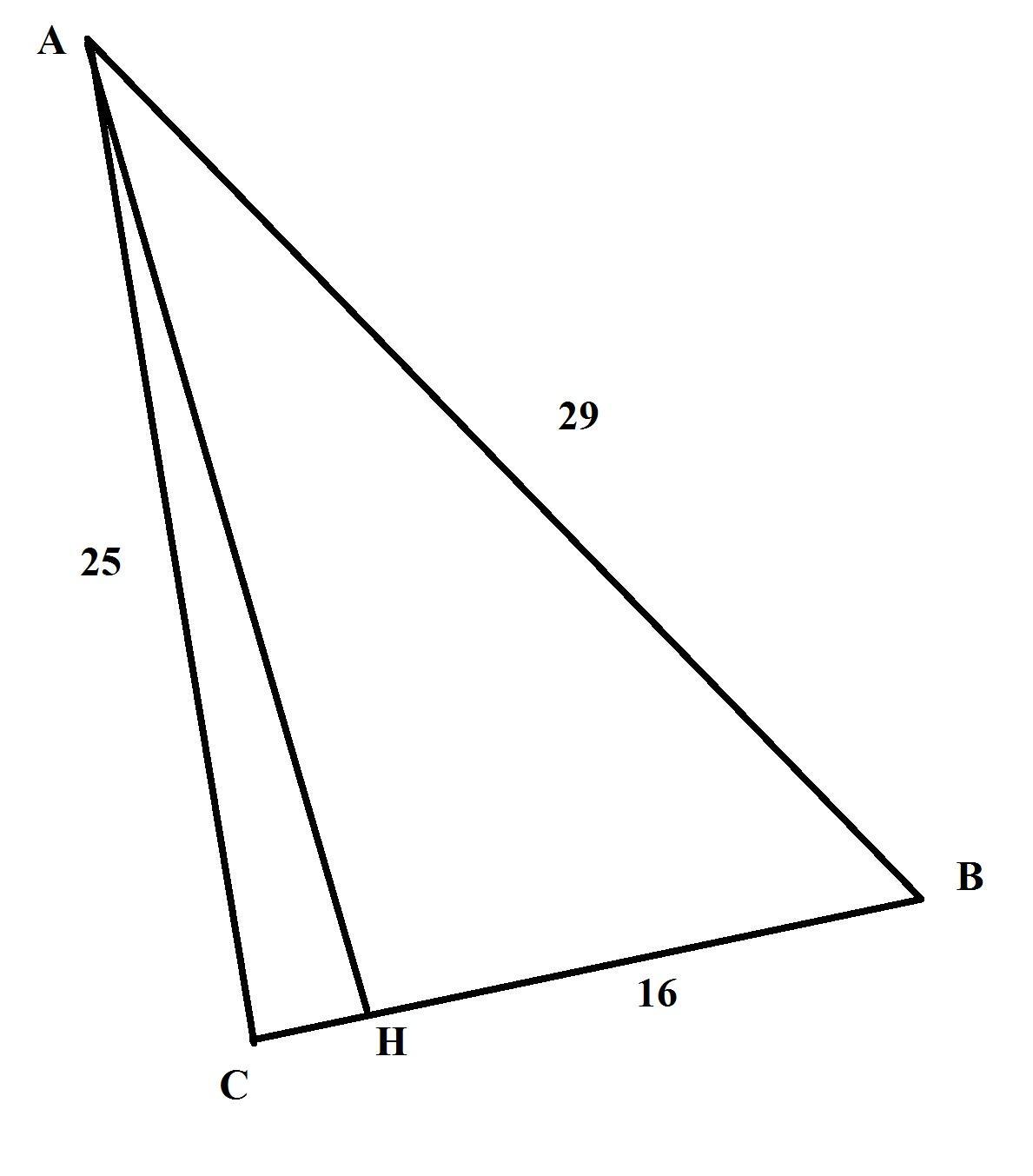 В треугольнике со сторонами 29, 25, 16 см. проведена высота к меньшей стороне. Найдите эту высоту.