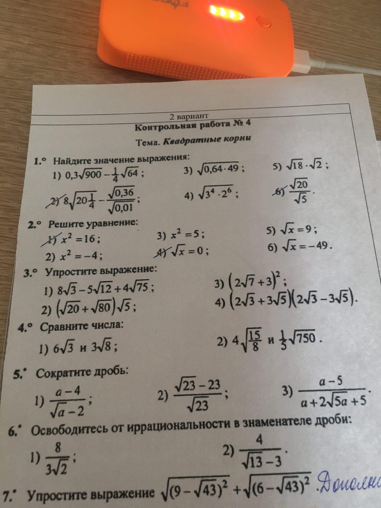 1) 0,3√900-1/4*√64= 0,3*30-1/4*8=9-2=7