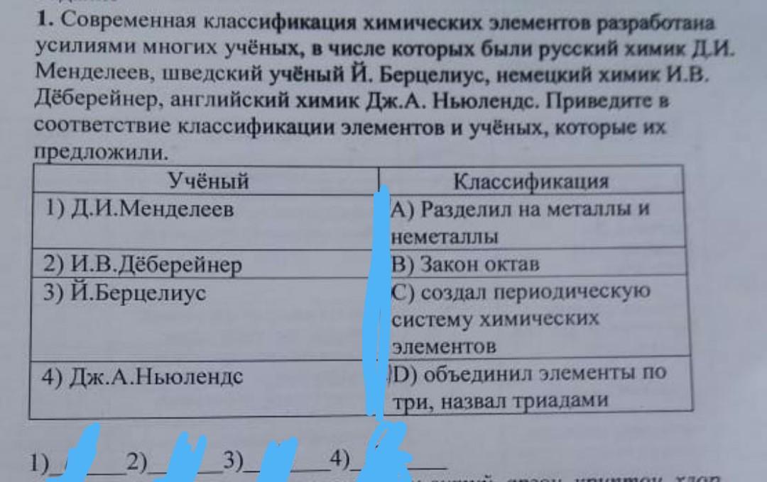 в)Джон Александр Ньюлендс действительно впервые констатировал факт периодического изменения свойств химических элементов, нашедший отражение в «законе октав».Однако, даже предложив введение порядкового номера элемента, Ньюлендс не смог обнаружить физический смысл в своем открытии.