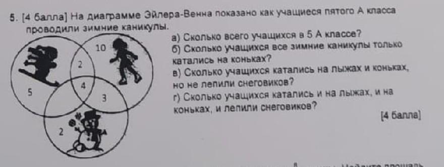 г) 4 учащихся катались на лыжах, на коньках и лепили снеговиков
