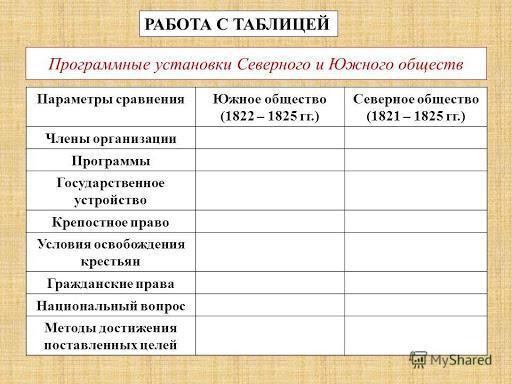 Участники: Н.М.Муравьев, С.П,Трубецкой, Н.И.Тургенев, Е.П.Оболенский, К.Ф.Рылеев, И.И.Пущин и др