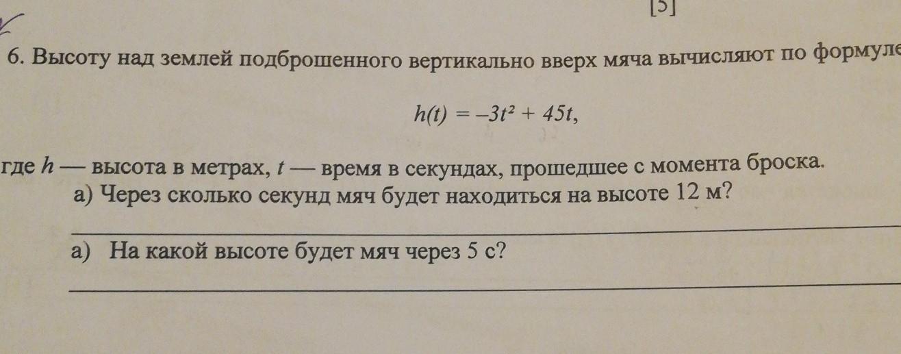 b) h(5) = -3 * 5² + 45 * 5 = -75 + 225 = 150 (м)