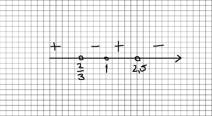 x ∈ (-∞; ) ∪ (1; 2,5)