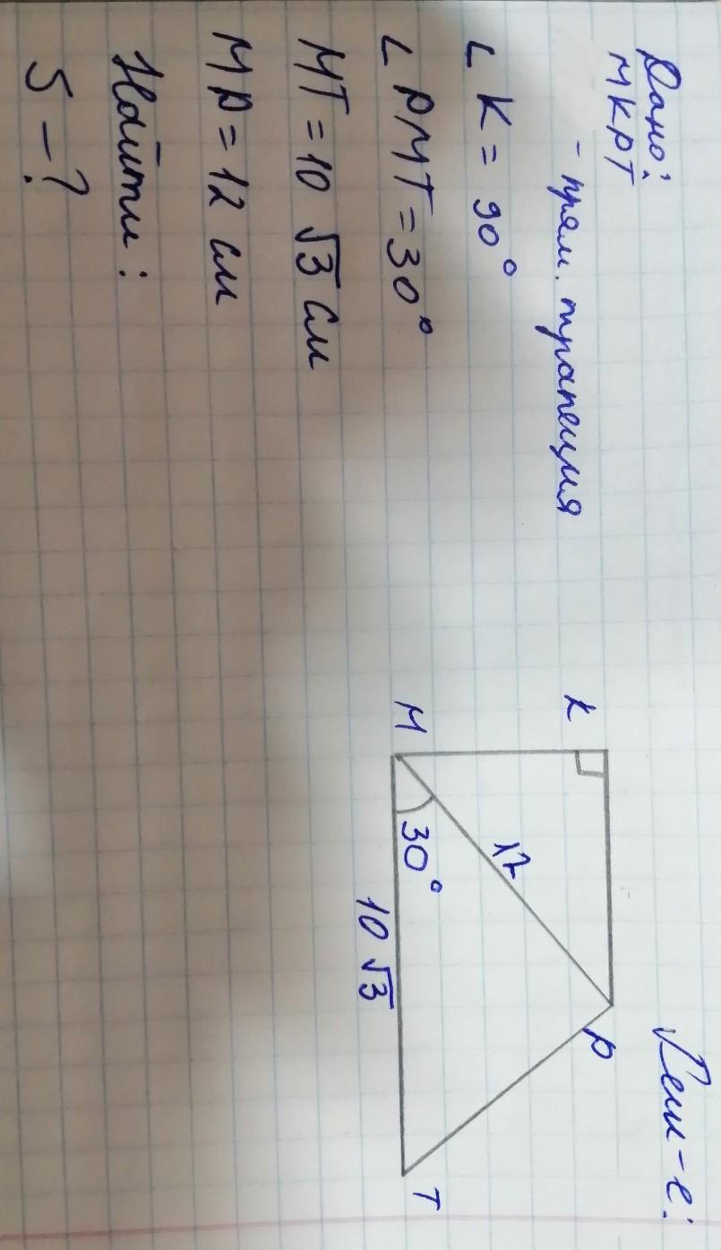 1) Найдем ∠KMP = 90° - ∠PMT = 90° - 30° = 60°