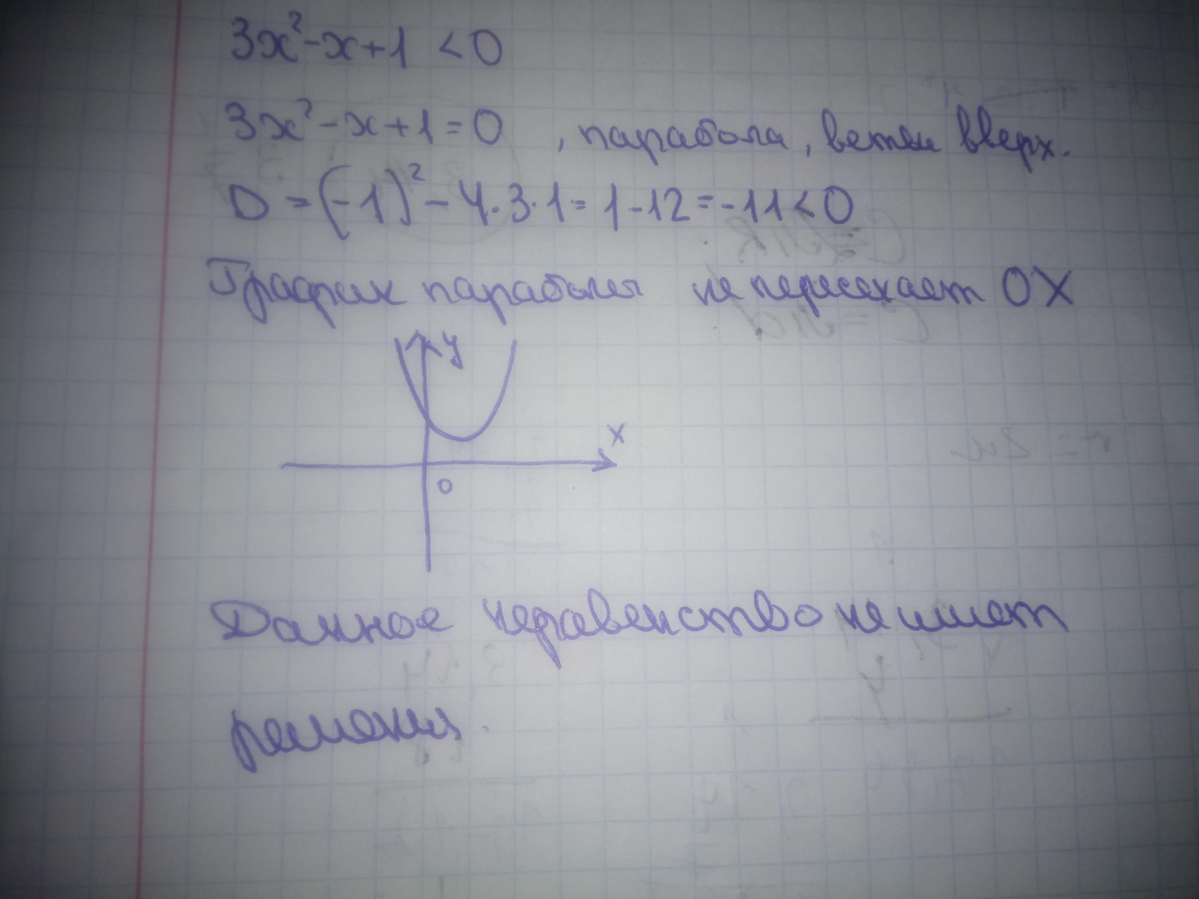3х²-х+1<0; это парабола ветвями вверх