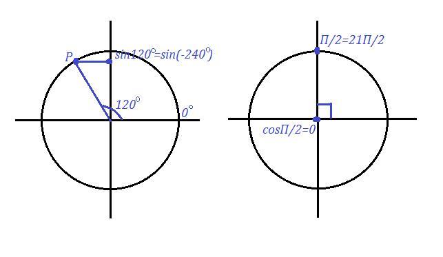 Используйте единичный круг, чтобы отобразить значения тригонометрических функций ниже в координатной плоскости.