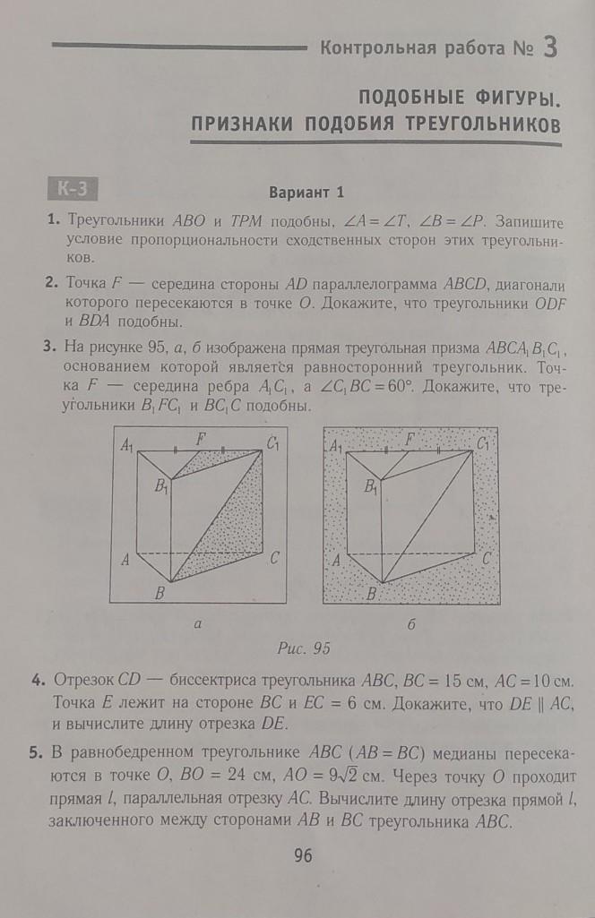 2) OF-средняя линия тр. АВД, значит OF||AB, <F=<A(соответств.), <ADB-общий, тр-ки подобны по двум углам.