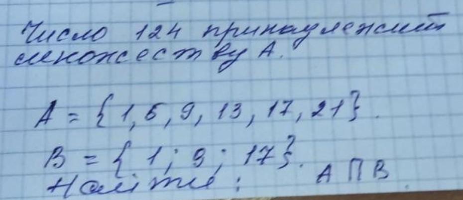 Пересечение множеств А и В - это множество, состоящее из элементов, принадлежащих как множеству А, так и множеству В.
