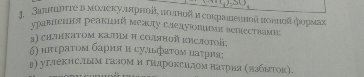 Запишите молекулярные, полные и сокращённые ионные формы уравнений реакций между следующими веществами