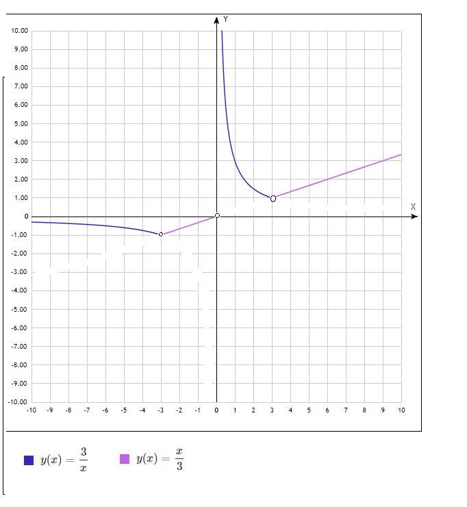 y=0.5(x/3-3/x+x/3+3/x)=0.5*2x/3=x/3 -прямая строится
