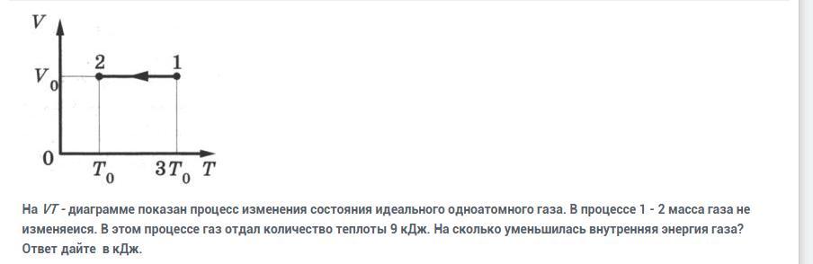 ΔU = Q = -9*10³ = -9кДж