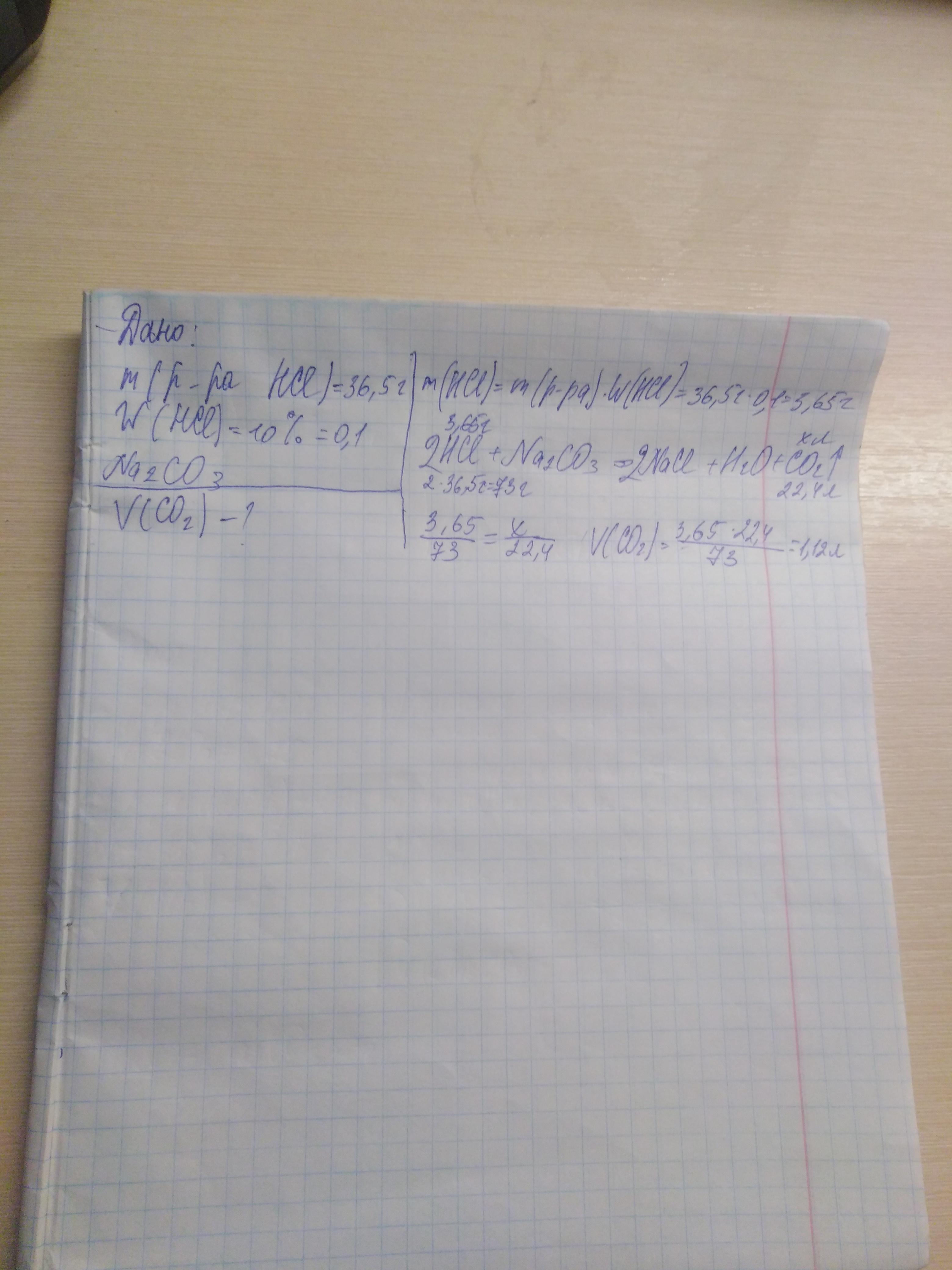 2. Какой объем углекислого газа (н.у.) можно получить при взаимодействии 36,5г 10% ‒ ного раствора соляной кислоты с карбонатом натрия?