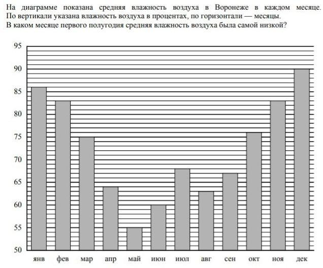Самая низкая влажность была в мае - 55