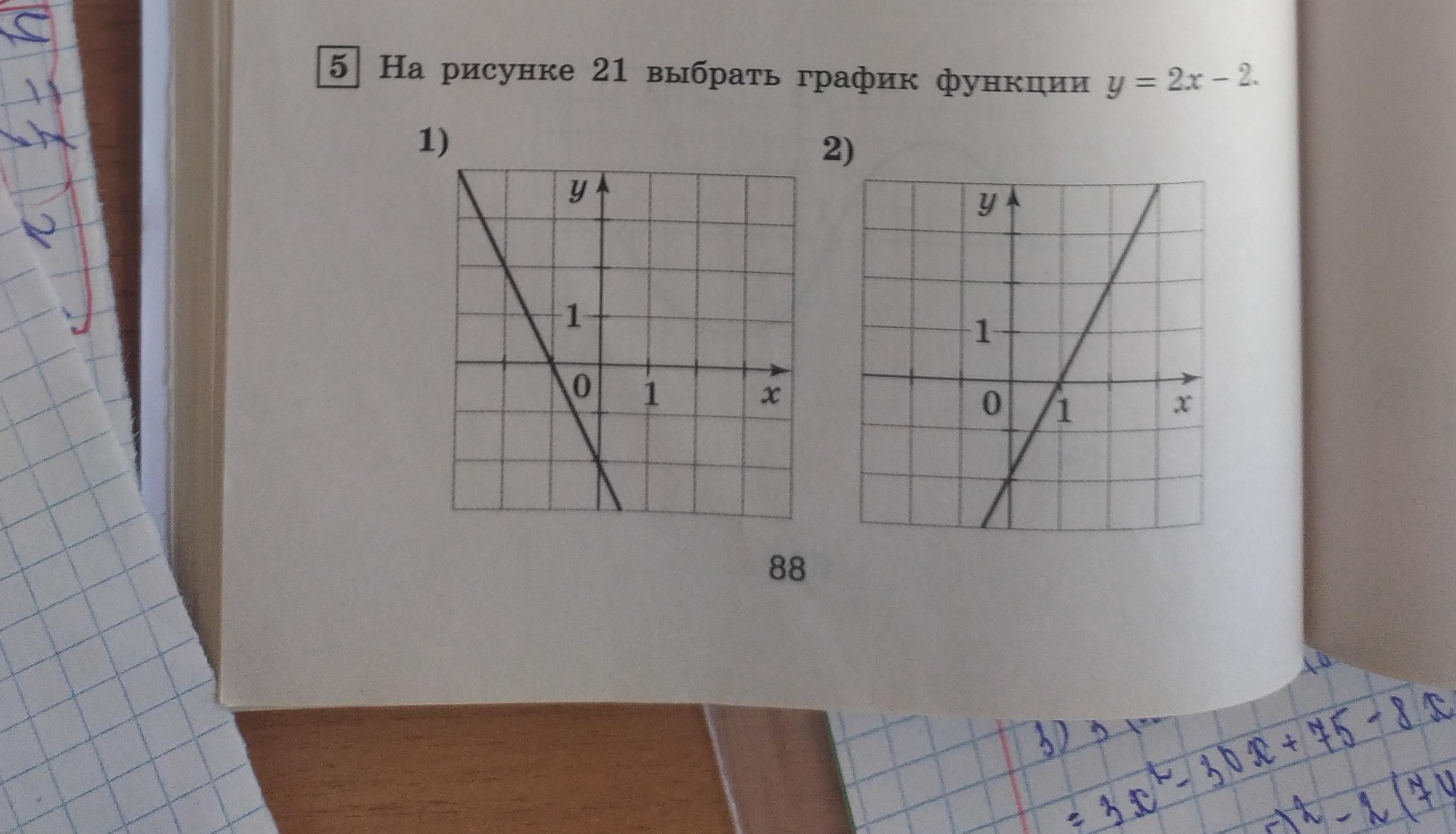 На рисунке 21 выбрать график функции y=2x-2. Пожалуйста, объясните как вы находите нужный график.