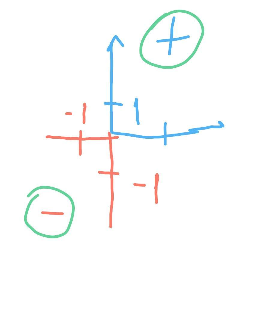 если бы с минусом то, влево, а второе число с минусом значит, будет внизу.