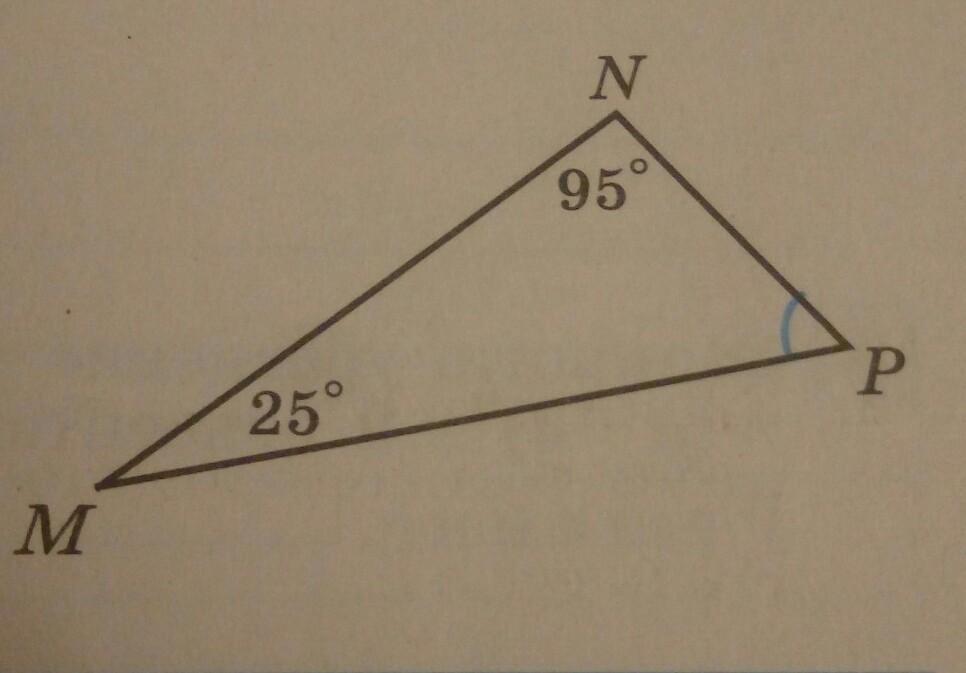 ∠Р = 180° - (25° + 95°) = 180° - 120° = 60°.