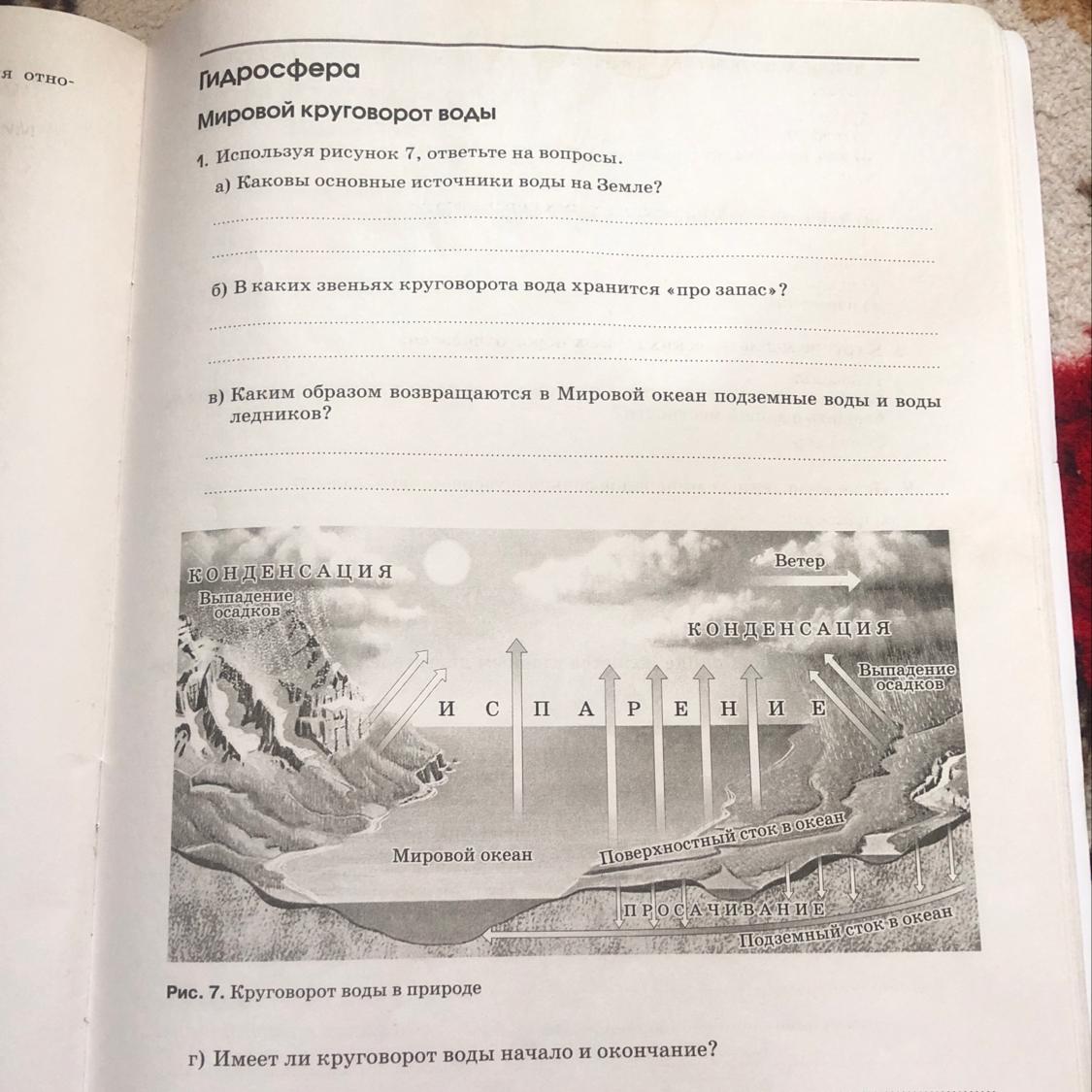 А) Мировой океан, выпадение осадков, поверхностный сток в океан, подземный сток в океан