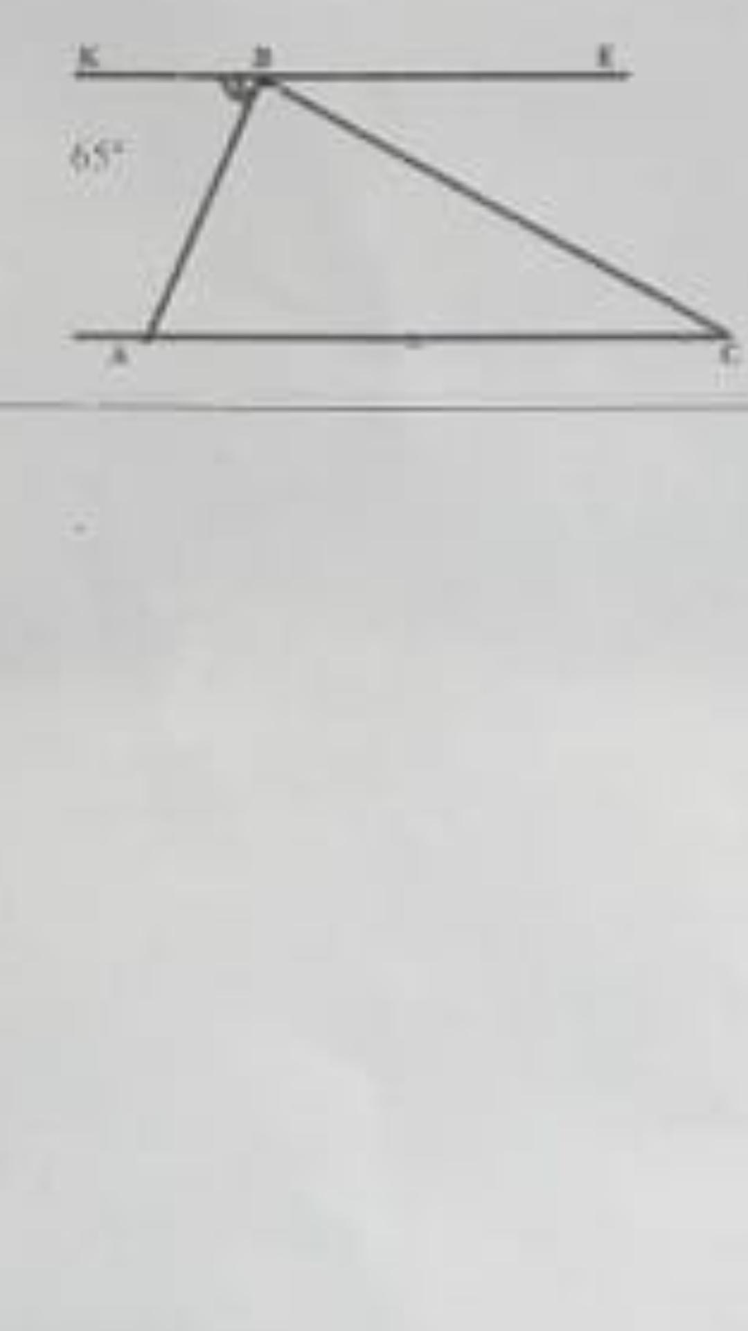 Углы КВА и ВАС внутренние накрест лежащие при КЕ ║АС и секущей АВ, поэтому равны по 65° и третий угол треугольника ∠АСВ =180°-24°-65°=91°, рисунок не совсем соответствует ответу..