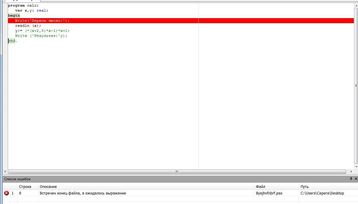 Ошибка на строке