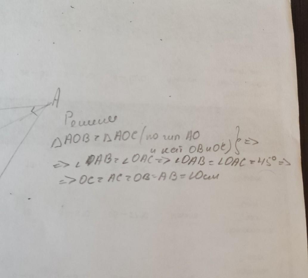 из точки A к окружности с центром O проведены карательные AB и AC(С и B - точки касания).Найти длины отрезков AB и AC, если угол BAC =90°, SO=10см.