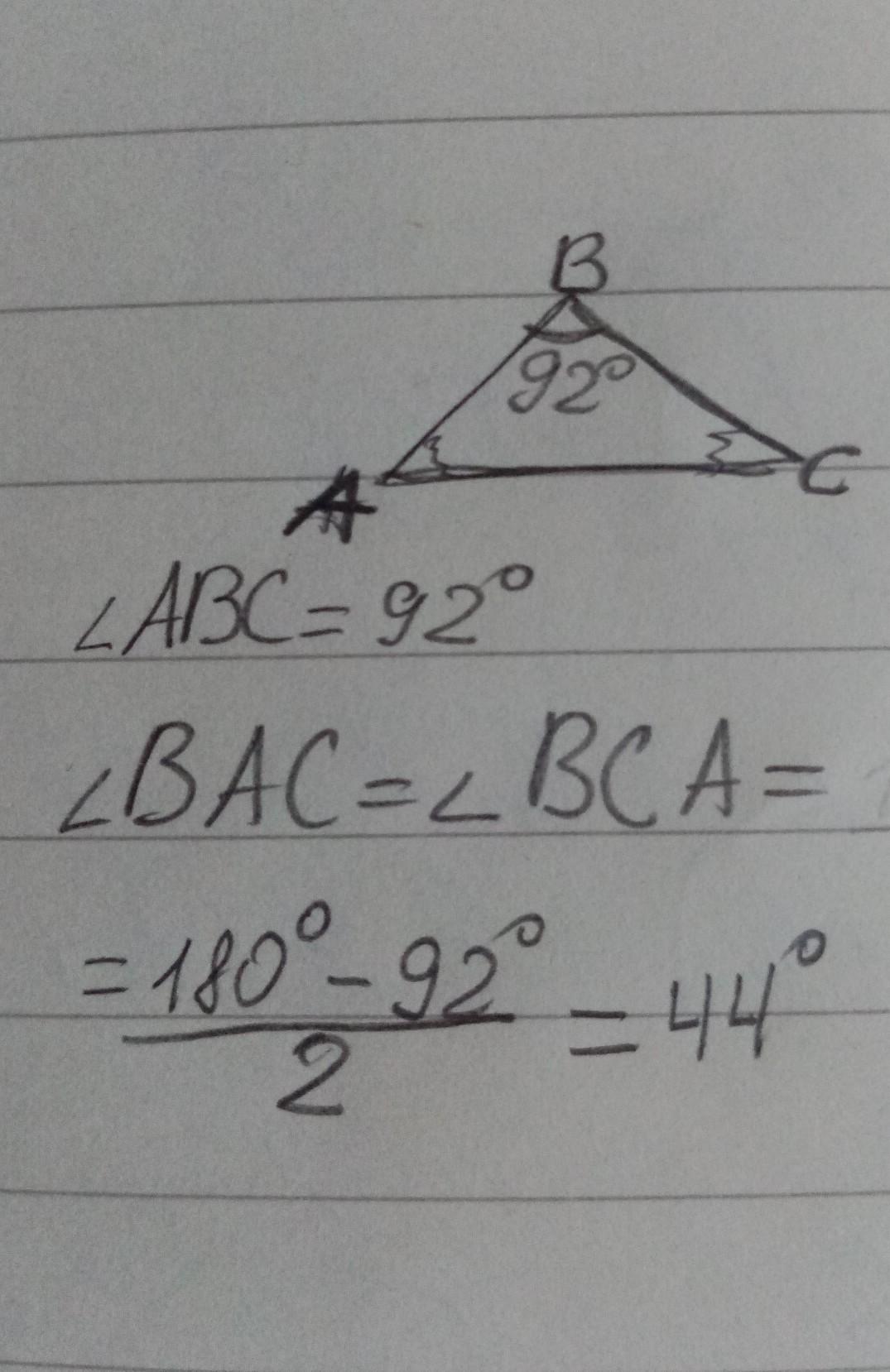 Знайты кут ривнобедрыного тракутныка якщо одын зных 92 градксы