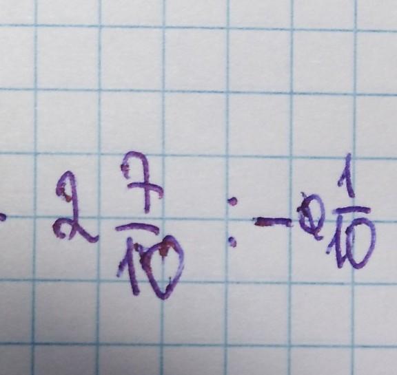 27/10 : - 1/10 = - 27*10/ 10*1 = - 27*1/ 1*1= - 27/1 = -27