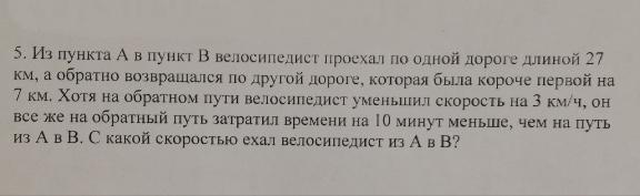 х₂ = 27 - отбрасываем, как слишком большую для велосипедиста.