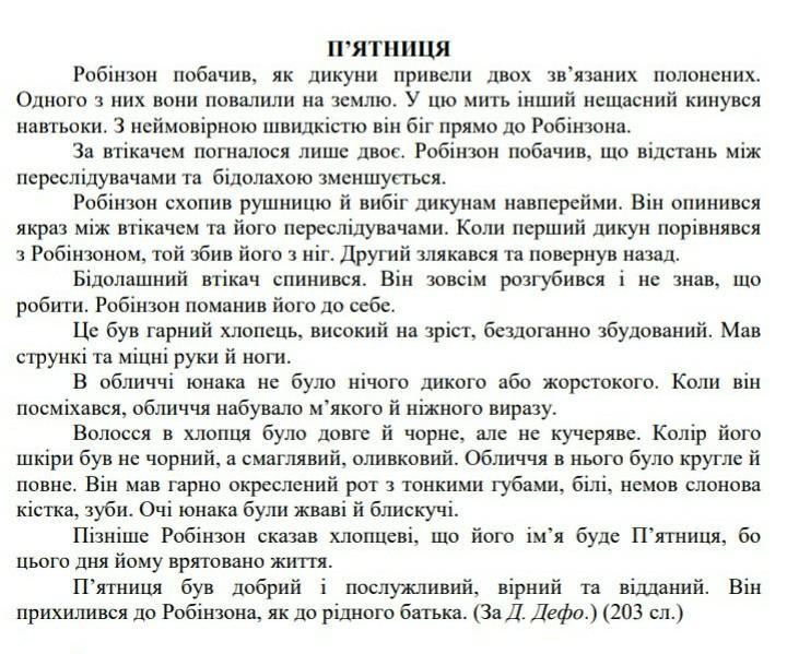 Робинзон увидел как дикари вели двух связаных пленников. Повалив одного из них на землю, второй пленник убежал прочь. С неймоверной скоростью он приближался прямо к Робинзону. За несчастным погнались вего двое дикарей, но Робинзон видел что расстаяние между ними стремительно уменьшается. Тогда он схватил ружье и выбежал навстречу, оказавшись между беглецом и его преследователями, Робинзон повалил первого дикаря, а второй, испугавшись, убежал. Пленник был растерян, осмотрев его, Робинзон заметил что он довольно высокий, имеет хорошее тело и сильные руки и ноги. В его лице не было ничего ни жестокого, ни дикого. Когда он улыбался, лицо приобретало нежного и мягкого выражения. Волосы были темные, длинные, но не вьющиеся. Цвет кожи смуглый и даже оливковый. Лицо круглое и полное, зубы - как слоновая кость. Глаза юноши были оживленные и блестящие. Позже Робинзон сказал ему, что отныне его имя - Пятница, потому что именно в этот день он был спасен. Пятница был хороший и услужливый и вкореприслонился к Робинзону как к родному отцу.