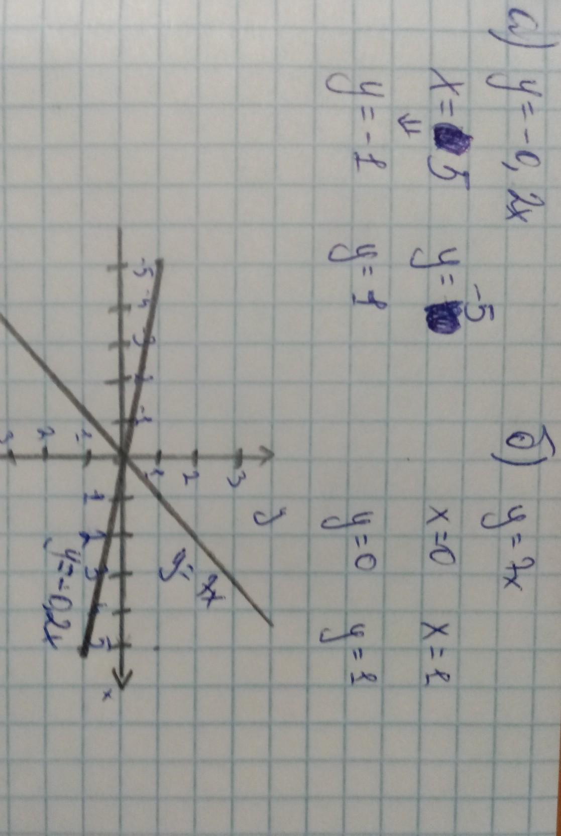 В одной и той же системе координат постройте графики функций а) y= -0,2x б) y=7x