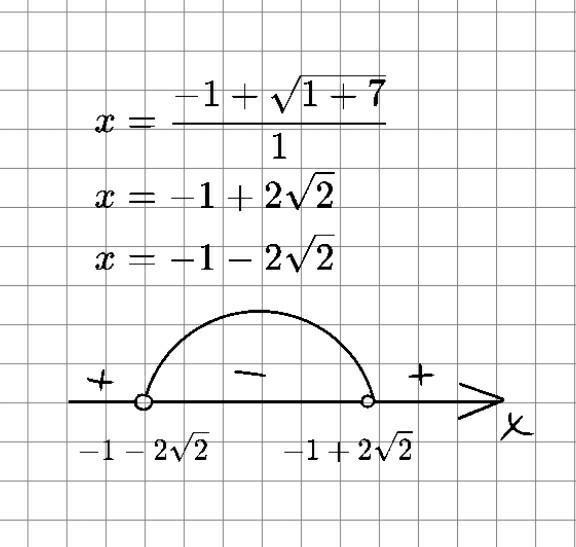 Я нашел дискрименант неравенства x^2+2x-7<0