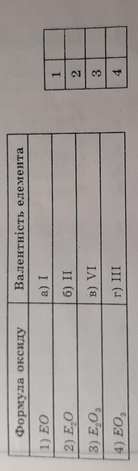 Встановіть відповіднісь між загальною формулою оксиду та валентість елемента: