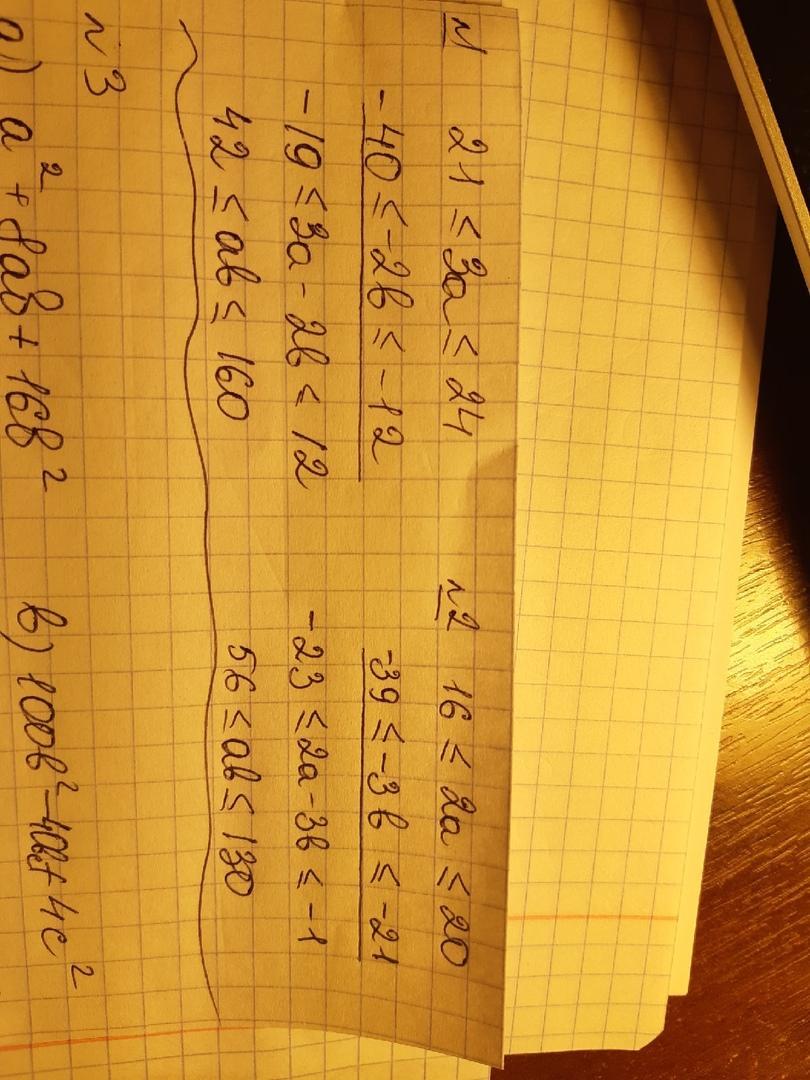 Для чисел a и b выполнены неравенства 7≤a≤8 и 6≤b≤20. Оцените значение выражения 3a-2b, ab.