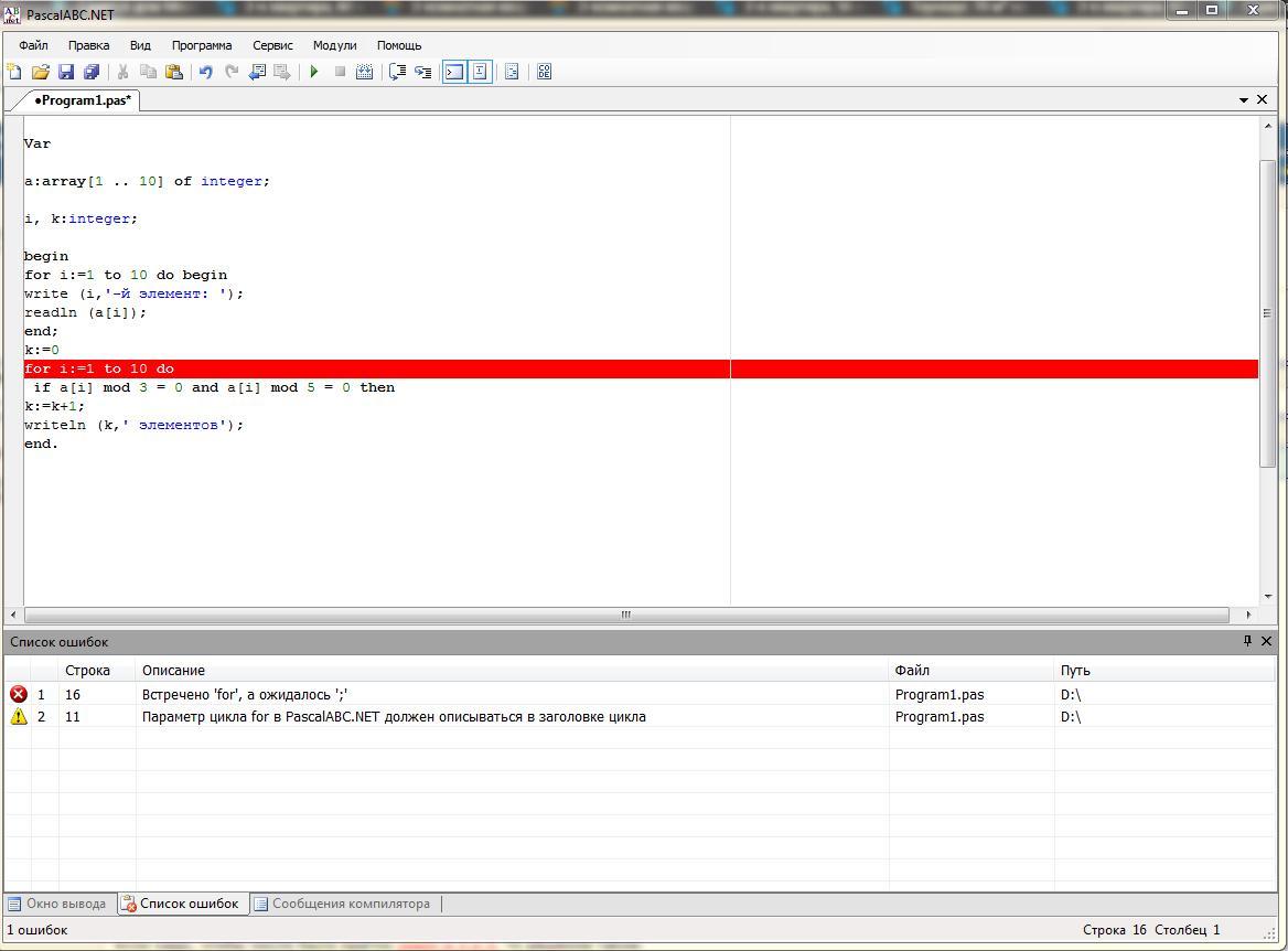 После k:=0 забыл поставить ";" в результате программа не распознаёт следующую операцию, так как предыдущей не дано завершение
