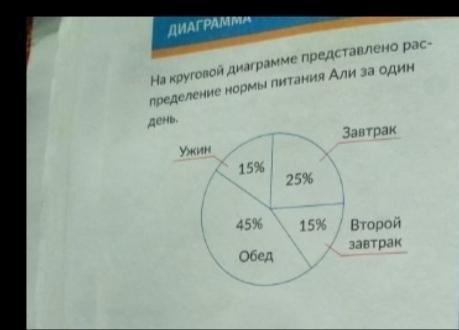 45 минут это 15%, нам требуется найти сколько тратит Али на весь приём пищи, то есть 100%, тогда: