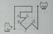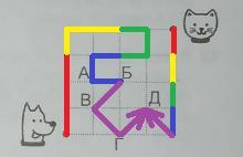 Если собака бегает в три раза быстрее, значит три клетки она проходит за раз, а кошка одну. Если начать просчитать, то получится Д. Есть ещё один способ: