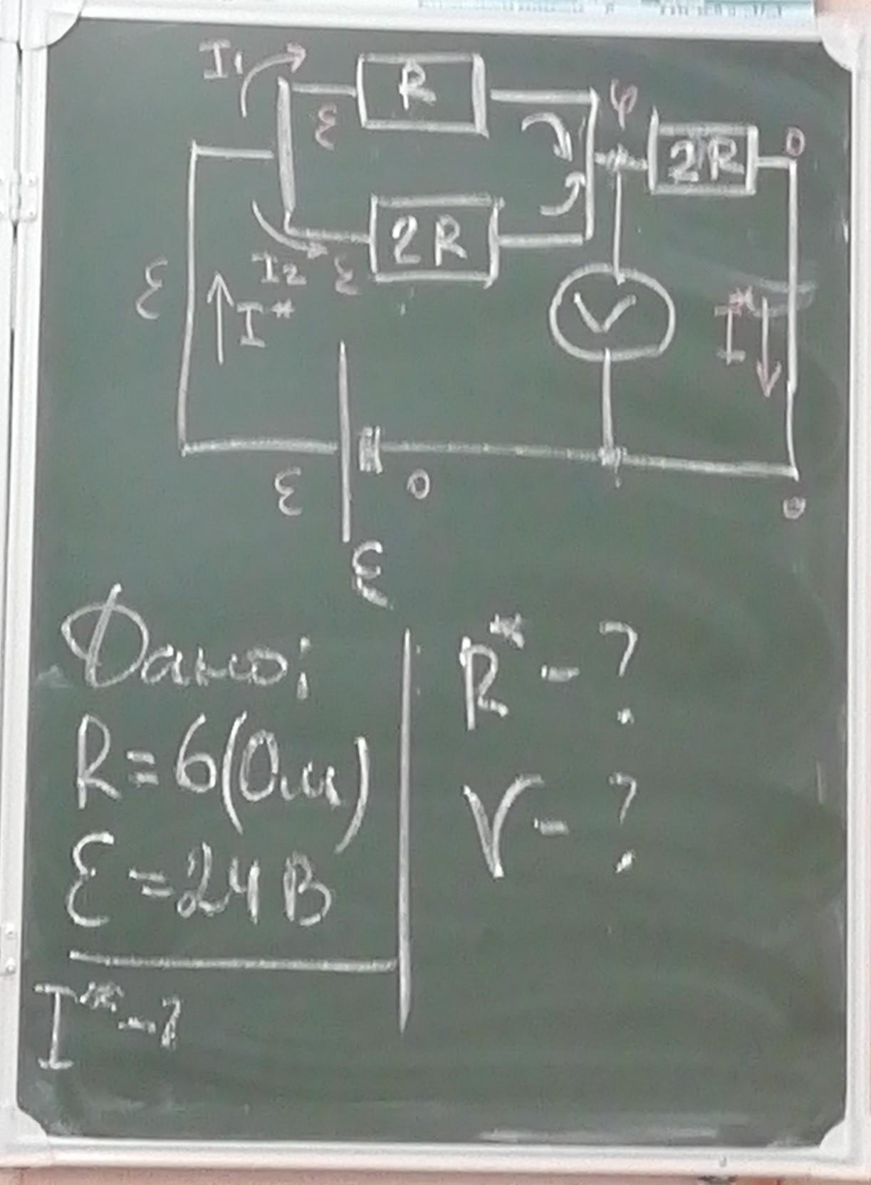 Iобщ=E/Rобщ; Iобщ=24/16=12/8=3/2=1,5 А;