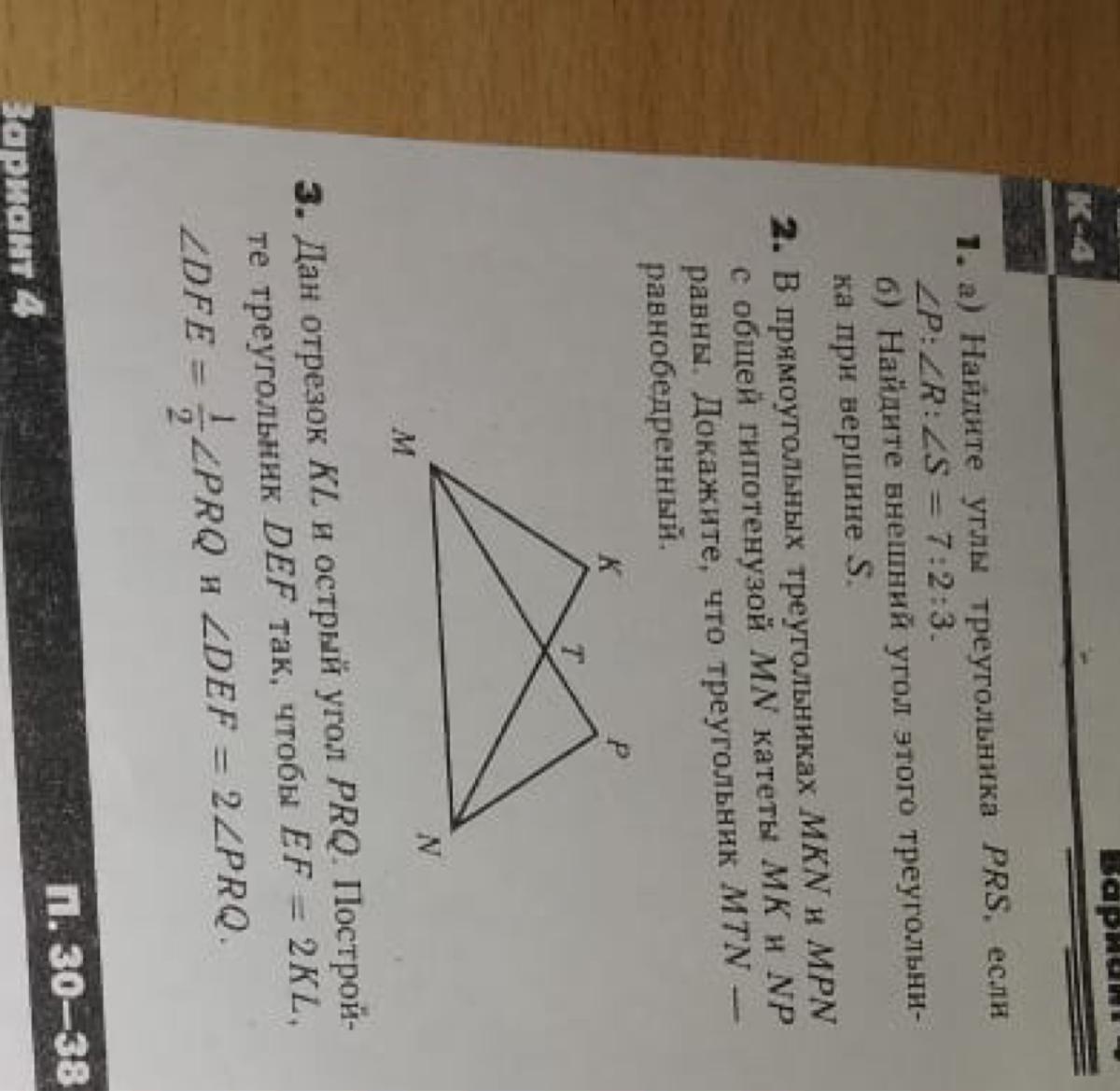 тр-к MKN=MPN (по гипотенузе и катету) значит угол M=N значит MTN равнобедренный